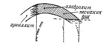 Рис. 1.2. Литологически ограниченная залежь нефти, связанная с антиклинальной структурой: