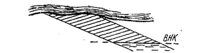 Рис. 1.4. Литологически экранированная залежь нефти, приуроченная к зоне угловых дезъюнктивных несогласий