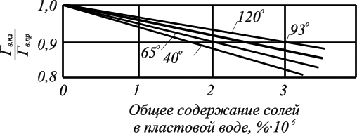 Значения поправочных коэффициентов на минерализацию в зависимости от температуры