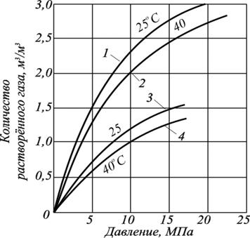 Коэффициент растворимости нефтяных газов в воде изменяется в широких пределах и достигает 4-5·10-5 м3/(м3·Па).