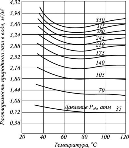 Рассмотримпример. Определить растворимость углеводородных газов в пластовой воде при давлении 105 атм, температуре 35°С и минерализации 30000 мг/л (3 %).