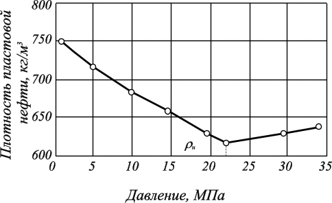 С увеличением пластового давления плотность нефтей уменьшается до давления равного давлению насыщения, за счет увеличения количества растворенного в ней газа. Эта закономерность значительна при насыщении нефти углеводородными газами.