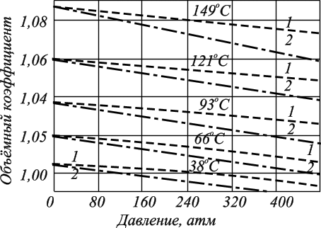 Увеличение пластового давления способствует уменьшению объёмного коэффициента, а рост температуры – увеличению. Объёмный коэффициент изменяется в пределах 0,99-1,06.