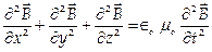 6. Волновые уравнения для электромагнитной волны при распространении ее в области пространства, не содержащей зарядов и токов: