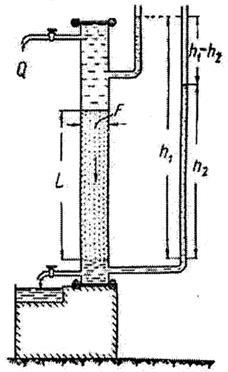 Рис. 1.6. Схема экспериментальной установки Дарси для изучения