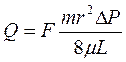 Уравнение Пуазейля описывает объемную скорость течения жидкости через такую пористую среду: