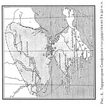 - с северного берега Яксарты (Сыр-Дарьи) через нынешние области Семиреченскую и Акмолинскую по рекам Западной Сибири в Оренбургские, Донские и Черноморские степи, представляющие собой неразрывное целое (в древности Азиатская и Европейская Скифия). Исторические и лингвистические данные выявляют однородность археологических памятников на этом огромном пространстве и позволяют сделать выводы, что до н.э. все эти чернозёмные степи от Оби, Яксарты, Дуная и Западной Двины были заняты одним господствующим народом - скифами. По археологическим данным они принадлежали не к финским или монгольским, а к арийским племенам, в которых славянская составляющая была преобладающей.