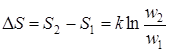 Обычно интерес представляет только изменение энтропии. При переходе из состояния 1, которому отвечает вероятность w1, энтропия изменяется от S1 до S2. Тогда из формулы (9.43) следует