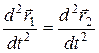 Дифференцируя последние равенства еще раз по времени, получим равенство ускорений: