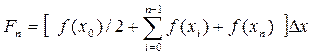 Другим приближением является формула трапеций, в которой интеграл оценивается вычислением площади трапеции со сторонами, равными значениям f(x) в начале и конце отрезка (рис.5.5).