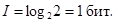 Допустим, происходит одно событие из двух равновозможных (как при играх «чет – нечет», «орел – решка», черное - белое, истина-ложь). Тогда, N = 2, по формуле Хартли количество информации, содержащееся в сообщении о произошедшем событии, составляет: