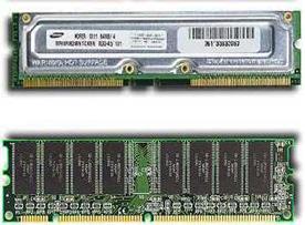 Рисунок 3.16 - Микросхемы памяти RIMM (сверху) и DIMM (снизу)
