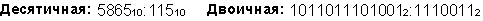 Ответ: 5865 : 115 = 5110 = 1100112 = 638.