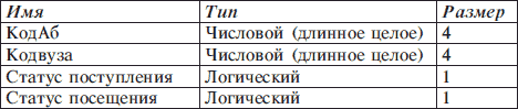 Первые два поля являются ключевыми, причем для таблицы тСвязь-Абвузы они являются чужими ключами.