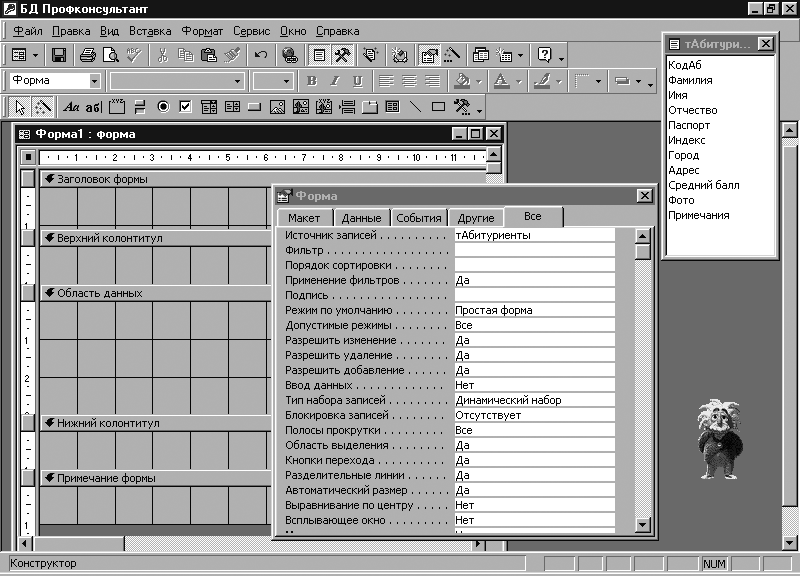 Рисунок 12.13. Создание формы в режиме Конструктор