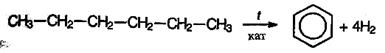 Принцип получения ароматических углеводородов из нефти можно схематически представить на примере образования бензола. Гексан каталитически превращается в циклогексан, который дегидрируется в бензол (реакция циклизации с одновременным дегидрированием):