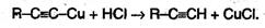 Ацетилениды серебра и меди как соли очень слабых кислот легко разлагаются при действии хлороводородной кислоты свыделением исходного алкина:
