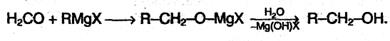 4. Действие реактивов Гриньяра (RMgX) на карбонильные соединения. Взаимодействием реактива Гриньяра с формальдегидом можно получить практически любой первичный спирт (кроме метанола). Для этого продукт присоединения реактива Гриньяра гидролизуют водой: