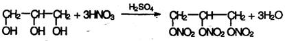 Для многоатомных спиртов характерно образование сложных эфиров. В частности, при реакции глицерина с азотной кислотой в присутствии серной кислоты образуется тринитрат глицерина, известный под названием нитроглицерин (последнее название неверно с химической точки зрения, поскольку в нитросоединениях группа -NО2 непосредственно связана с атомом углерода):
