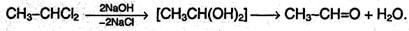 3. При щелочном гидролизе дигалогеналканов, содержащих два атома галогена при одном атоме углерода, образуются двухатомные спирты, в которых две группы ОН соединены с одним атомом углерода. Эти вещества неустойчивы и отщепляют воду, превращаясь в карбонильные соединения: