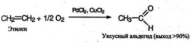 5. Окисление алкенов. Альдегиды и кетоны получают окислением углеводородов ряда этилена кислородом воздуха в присутствии хлоридов палладия (II) и меди. (II), например: