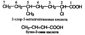 Углеводородную цепь нумеруют начиная с атома углерода карбоксильной группы, например: