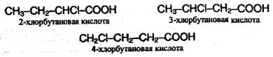 5. У гетерофункциональных кислот имеется изомерия, связанная с положением функциональных групп, например, существуют три изомера хлормасляной кислоты: