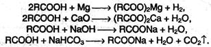 1. Образование солей. Карбоновые кислоты обладают всеми свойствами обычных кислот. Они реагируют с активными металлами, основными оксидами, основаниями и солями слабых кислот: