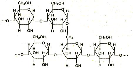 В отличие от амилозы, амилопектин не растворим в воде и имеет разветвленное строение. В его молекуле остатки α-глюкозы связаны не только 1,4-связями, но и 1,6-связями: