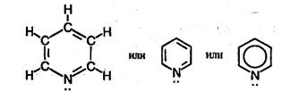 Пиридин C5H5N – простейший шестичленный ароматический гетероцикл с одним атомом азота. Его можно рассматривать как аналог бензола, в котором одна группа СН заменена на атом азота: