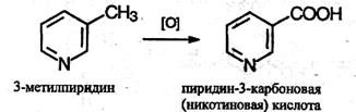 4. Гомологи пиридина по свойствам похожи на гомологи бензола. Так, при окислении боковых цепей образуются соответствующие карбоновые кислоты: