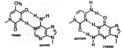 В каждой паре оснований, связанных водородными связями, одно из оснований – пуриновое, а другое – пиримидиновое. Отсюда следует, что общее число остатков пуриновых оснований в молекуле ДНК равно числу остатков пиримидиновых оснований.