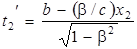 Одновременность событий в разных системах отсчета.Пусть в системе К в точках с координатами х1 и х2 происходят одновременно два события в момент времени t1 = t2 = b. В соответствии с преобразованиями Лоренца в системе К' этим событиям будут соответствовать моменты времени