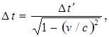 Введя обозначение t2 – t1 = ∆t и t2' – t1' = ∆t', получим формулу
