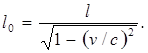 Таким образом, длина стержня l, измеренная в системе отсчета, относительно которой он движется, оказывается меньше длины l0, измеренной в системе, относительно которой стержень покоится.