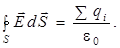 Теорема Гаусса в отсутствии диэлектрика (вакуум) формулируется следующим образом: поток вектора