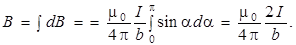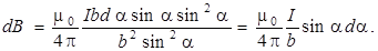 Угол α для всех элементов бесконечно прямого тока изменяется в пределах от 0 до π. Следовательно,