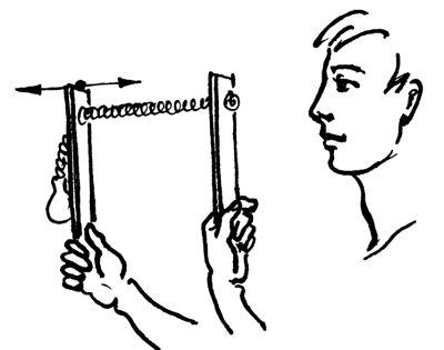 Начните вытягивать веревку в момент, когда палочки достаточно близко придвинуты друг к другу. Закройте глаза и вспоминайте то, что вы видели, продолжая двигать палочку взад – вперед. Затем с глубоким вдохом откройте глаза и снова продолжайте наблюдение (рис. 65).