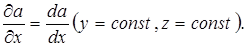 При вычислении производной величины а по координате х в формуле (П.4) считается, что координаты yи zостаются постоянными – такая производная называется частной производной по координате х: