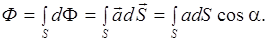 Суммируя потоки dФ через все площадки dSповерхности S, найдем поток вектора