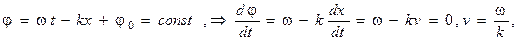 волны представляет собой скорость движения фиксированного значения фазы волны – фазовую скорость. Действительно,