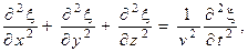 Волновым уравнением называют уравнение, решением которого является уравнение волны ξ(х, у, z, t). Найдем волновое уравнение для волновой функции (1.2). Если взять частные производные по координате х и времени t от ξ(х, у, z, t):