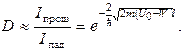 Совершенно иначе выглядит поведение частицы согласно квантовой механике. В квантовой механике с помощью уравнения Шредингера определяется коэффициент прозрачности потенциального барьера D, который равен отношению интенсивности волны, прошедшей потенциальный барьер, к интенсивности волны, падающей на барьер. Для рассматриваемой задачи находят следующее выражение: