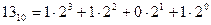 Для записи числа в двоичном коде достаточно записать последовательность коэффициентов, то есть 1310=11012