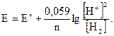 E = E° + 0,059 lg[H+]; Е° = 0; Е = 0,059 lg[H+] или Е = -0,059рН