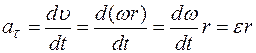 Ускорение а также можно выразить через угловые параметры, разложив ускорение а на две составляющие