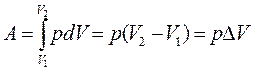 1. Изобарный процесс (p = const). При изобарном процессе работа газа при увеличении объема от V1 до V2 равна: