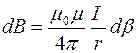 Следовательно, индукция dB, создаваемая элементом проводника dl с током I :