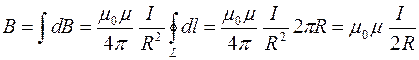 Следовательно, индукция магнитного поля B в центре кругового проводника радиусом R с током I :