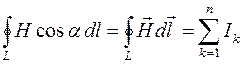по произвольному замкнутому контуру L равна алгебраической сумме токов, охватываемых этим контуром L.
